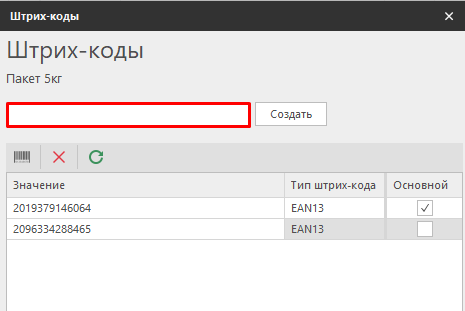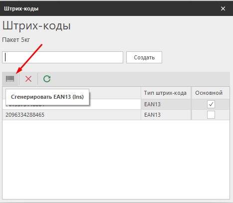 1. Сгенерировать — позволяет создать внутренний штрих-код для товара. Этот код генерируется с учётом внутреннего префикса, который задаётся в разделе конфигурации системы.