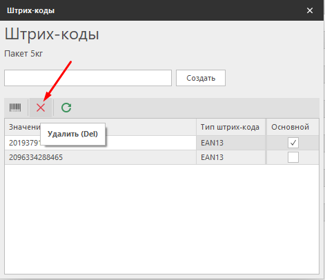4. Удалить — позволяет удалить существующий штрих-код для номенклатуры, что может понадобиться, если товар больше не продаётся или если штрих-код был добавлен ошибочно.