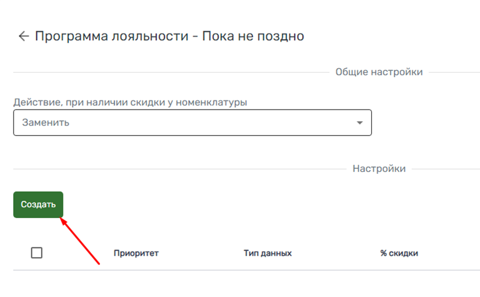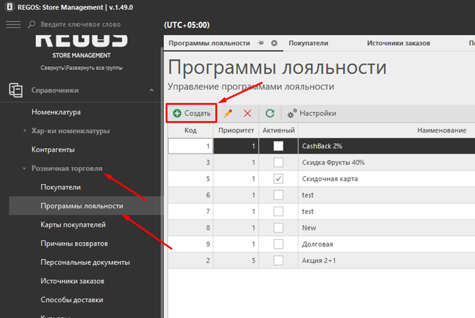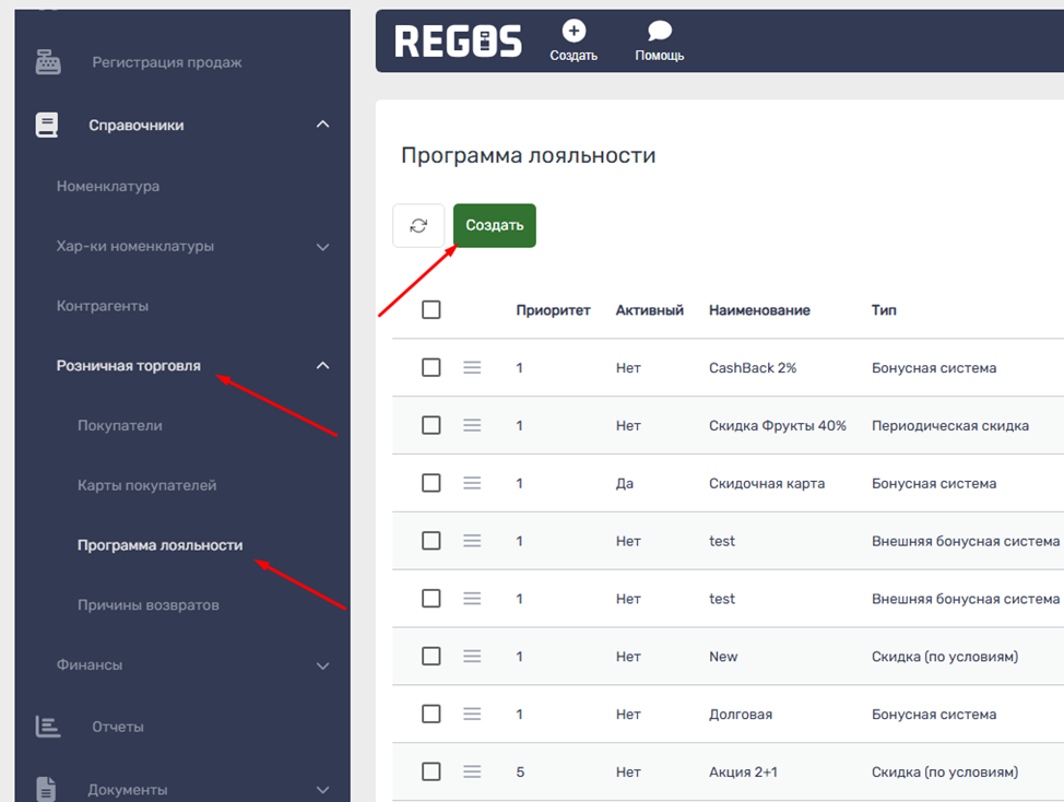 2. Перейдите в раздел "Программы лояльности" и создайте программу с помощью кнопки «Создать».