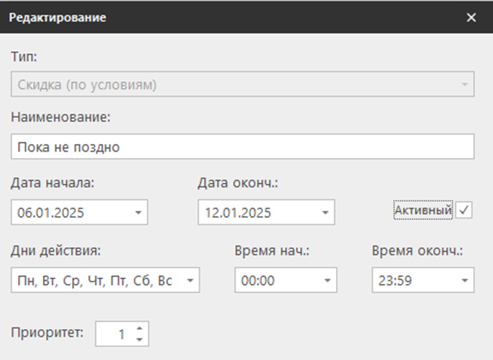 - Даты начала и окончания акции (например, с 6 по 12 января),