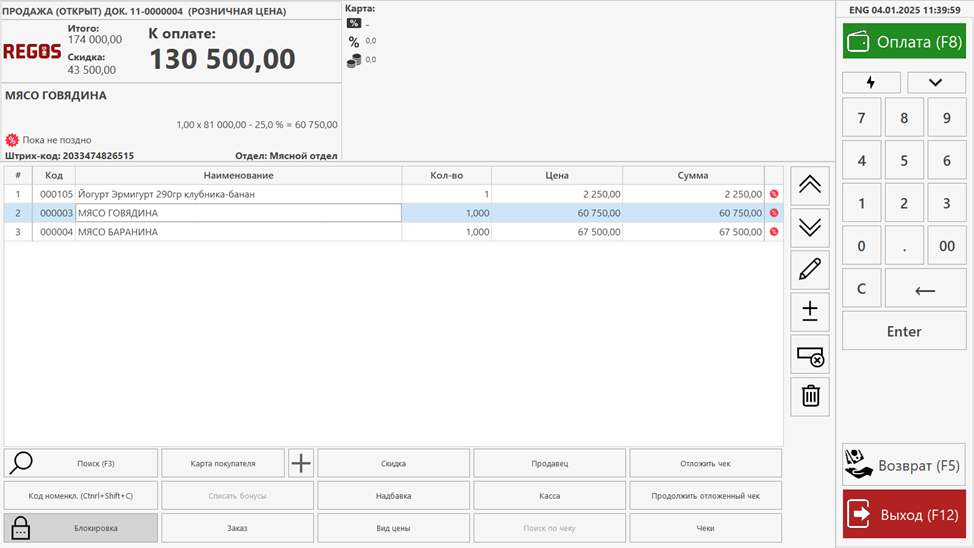 Акция "25% на все скоропортящиеся товары на всю неделю" — это отличная возможность ускорить продажу товаров с ограниченным сроком годности, повысить интерес клиентов и минимизировать убытки от нереализованных товаров. Настроив такую акцию через Сервис REGOS, вы получите эффективный инструмент для управления скидками, который поможет привлечь больше покупателей и увеличить объем продаж. Успешно настроенная акция позволит вам быстро распродать скоропортящиеся товары и максимально эффективно использовать ресурсы магазина.