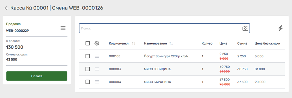 5. Проверка на кассе. На кассе, при пробитии чека, система автоматически определит товары, которые подпадают под акцию, и применит скидку 25% на все скоропортящиеся товары.