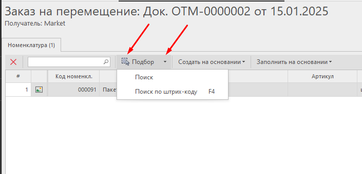 • Заполнить на основании — позволяет автоматически создать документы "Заказ контрагенту", "Заказ на перемещение", "Поступление от контрагента" и цену по виду цен.