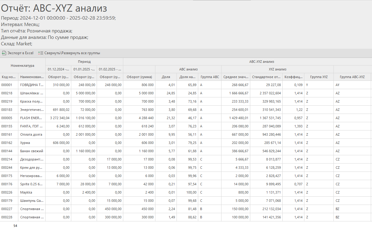 – Итоговая группа ABC-XYZ — сочетание обоих анализов.
