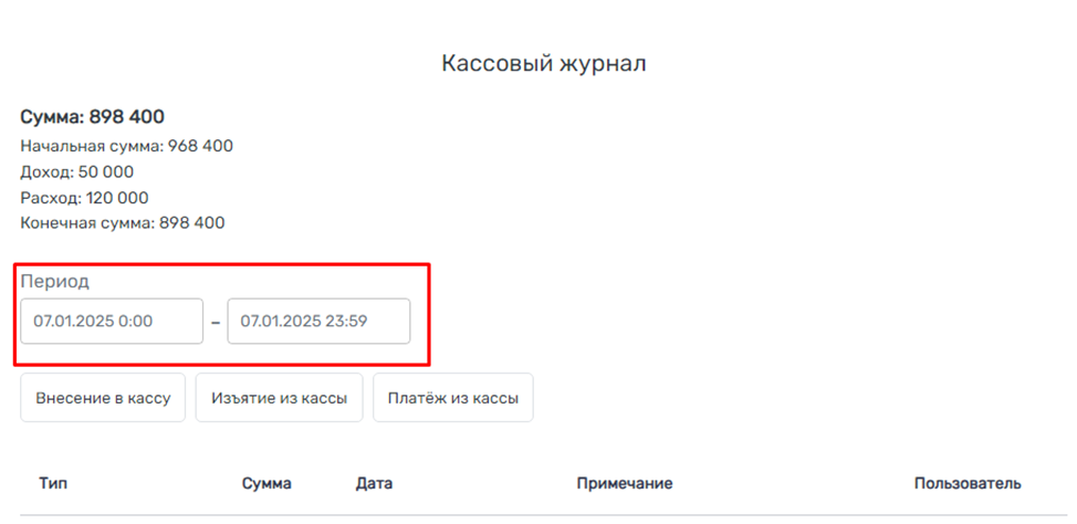 Для начала работы с кассовым журналом выберите необходимый период. Это позволит вам получать точную информацию о доходах и расходах в кассе за конкретный период.