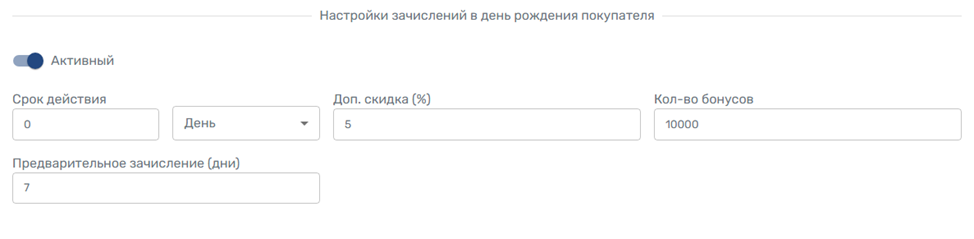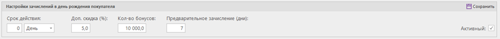 - Установите количество бонусов, которое будет зачисляться на карту покупателя в день его рождения.