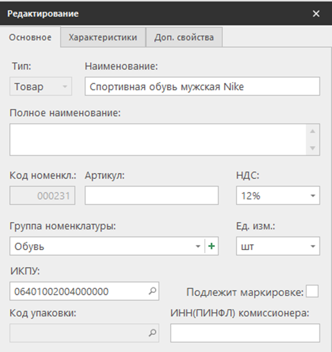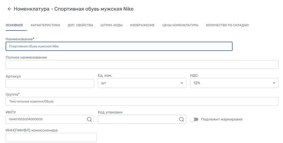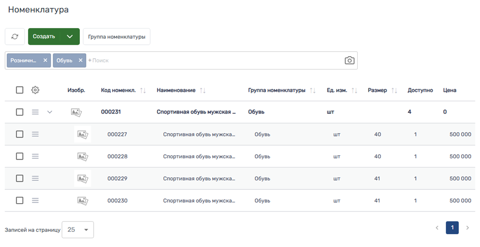 Пример REGOS: Online После сохранения номенклатура будет отображаться следующим образом:
