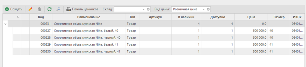 - Корректность информации: Все размеры товара точно отображаются в системе, что исключает возможные ошибки при продаже или учете.