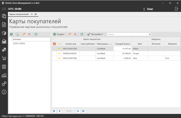 1. Выберите программу лояльности с типом "Бонусная система", к которой привязаны карты покупателя.