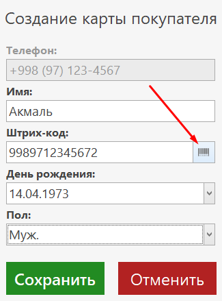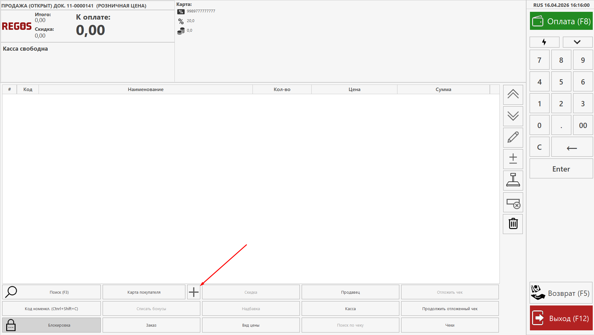 нажмите кнопку «+», расположенную справа от функции «Карта покупателя» на кассе.