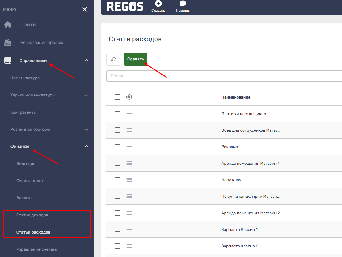 В Сервисе REGOS все операции ведутся через статьи доходов и расходов. Это помогает навести порядок в финансах: