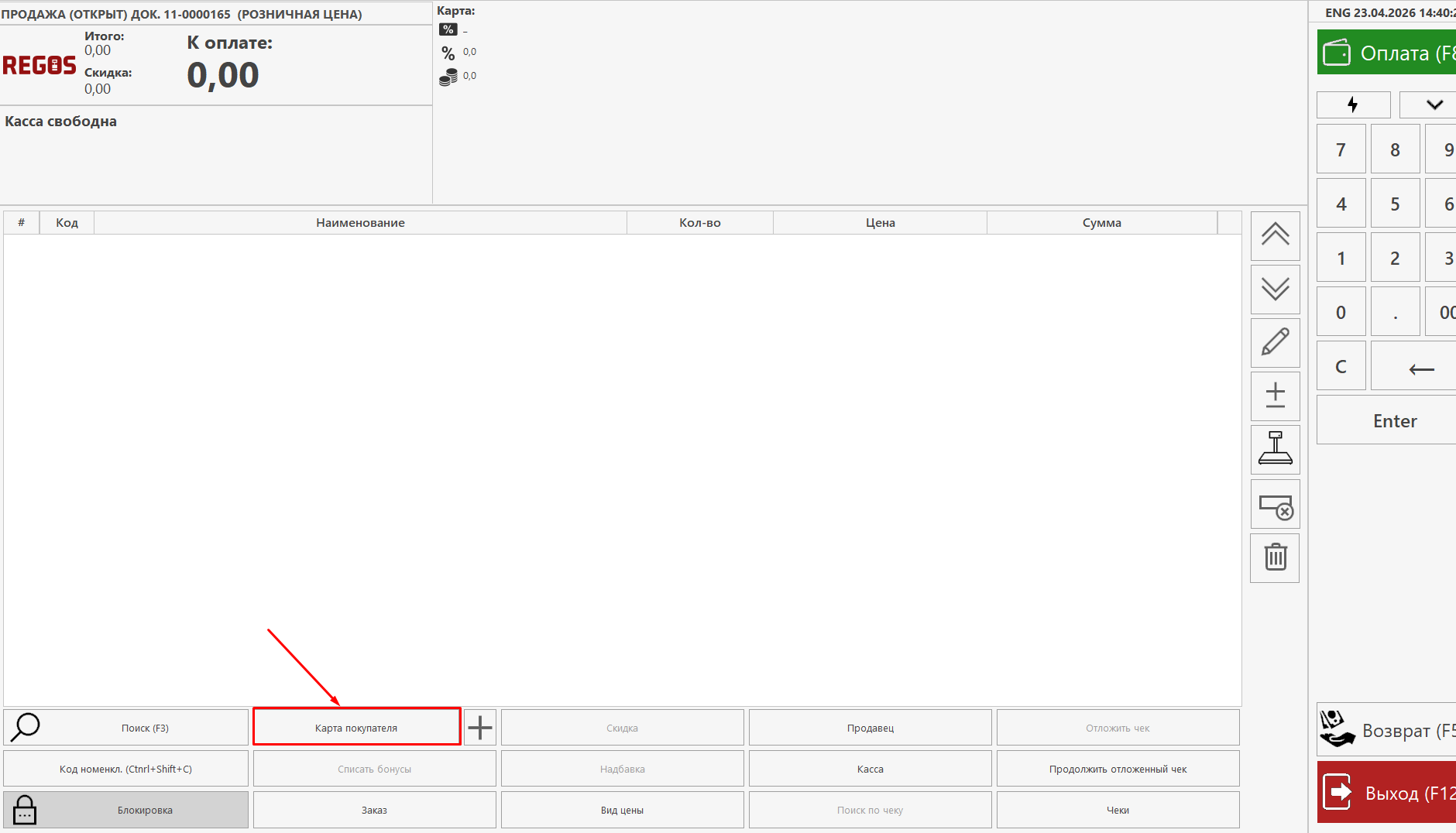 После ввода нажмите Enter, карта будет автоматически добавлена в чек.