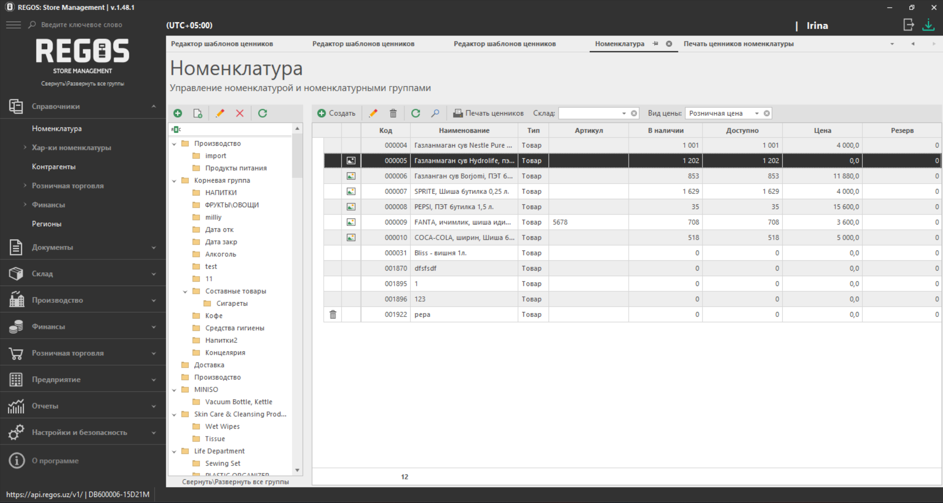 1. Чтобы распечатать созданный ценник, перейдите в раздел "Номенклатура", выберите нужный товар и нажмите "Печать ценников".