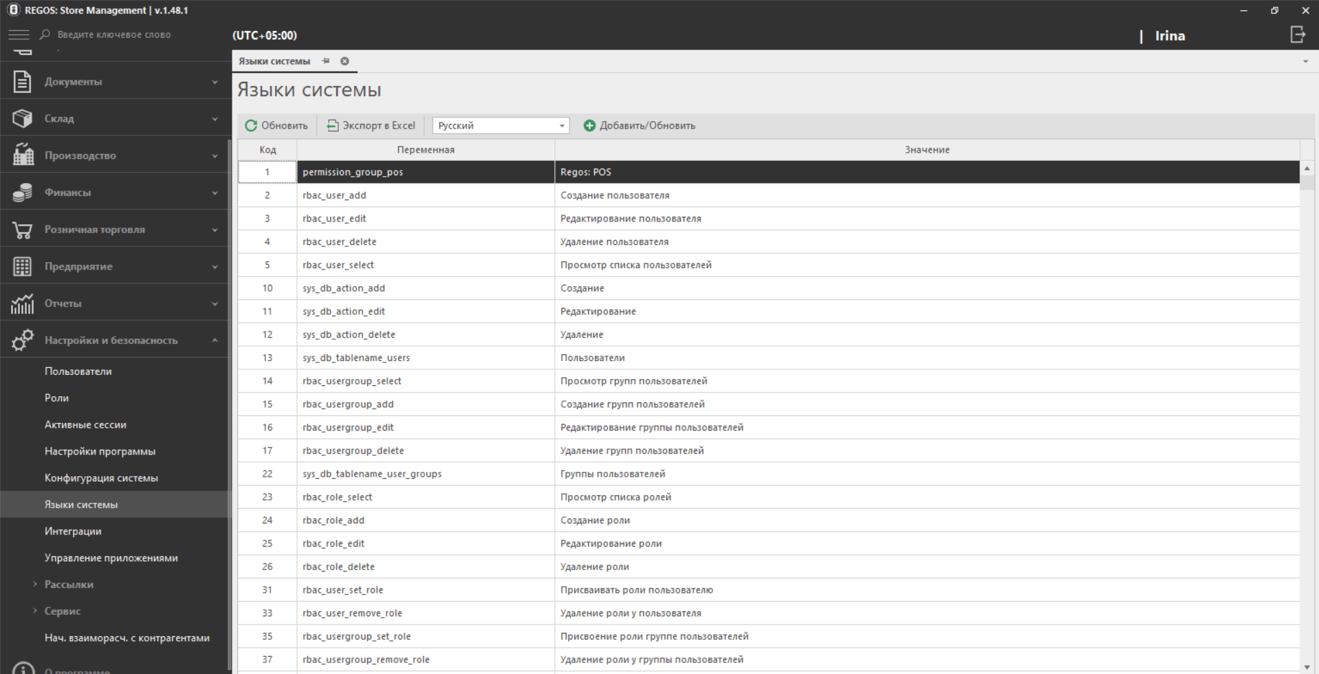 Шаги по актуализации языковых пакетов в REGOS: Store Management