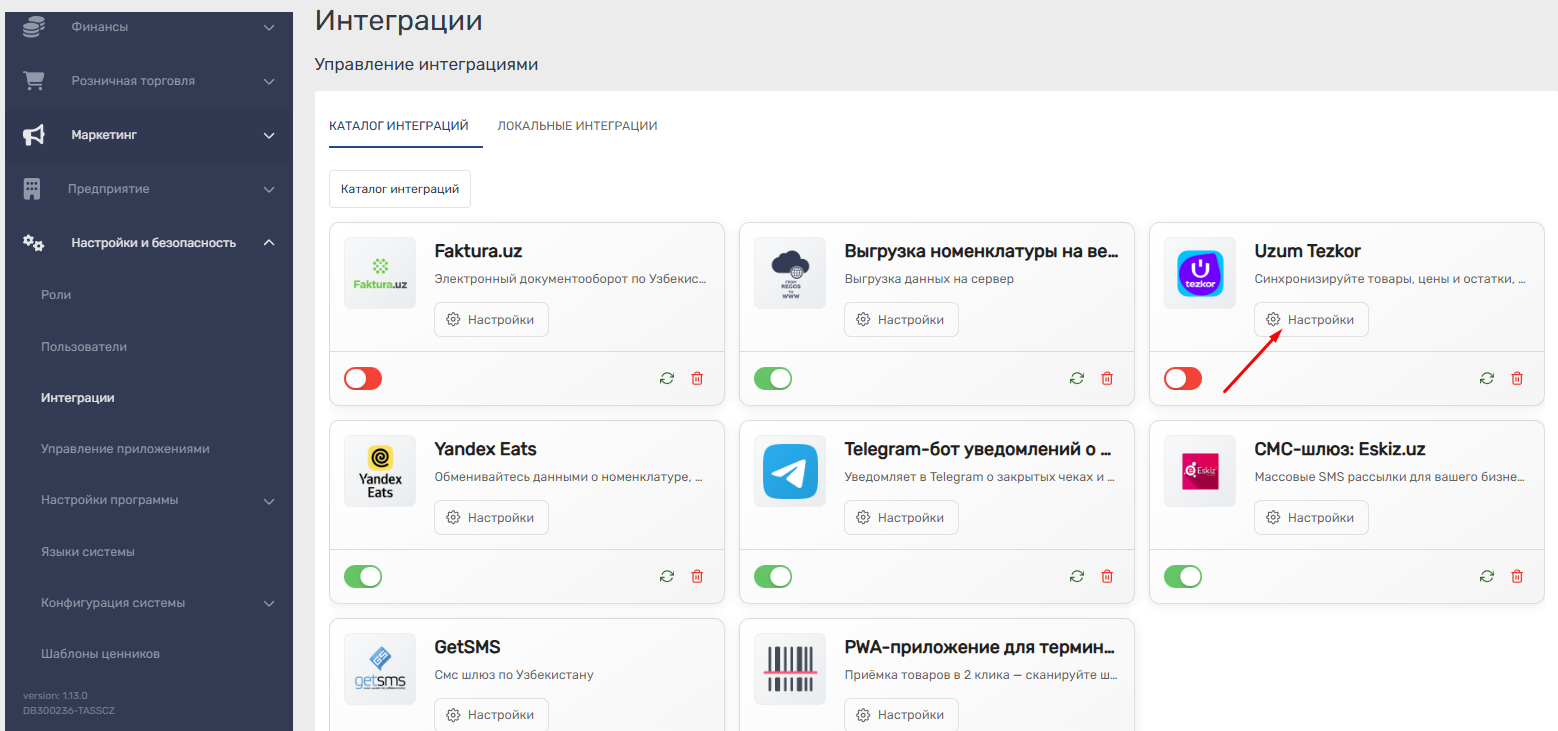 Нажмите Каталог интеграций, после этого откроется список доступных решений.