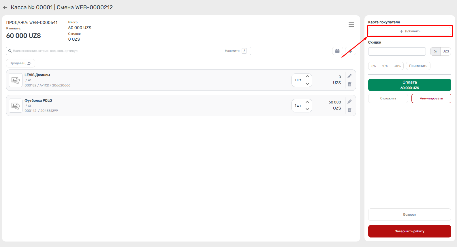 Товар добавляется в чек, формируется стандартная продажа, но оплата не принимается сразу.