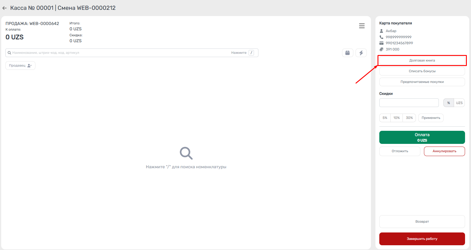 После оформления продажа автоматически попадёт в «Долговую книгу», где будет отражена сумма долга.