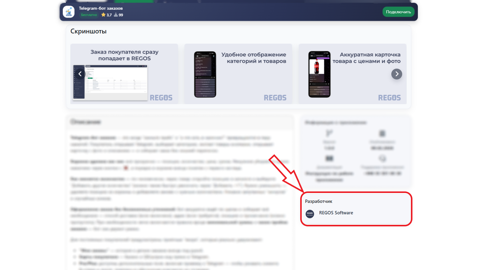 В карточке интеграции появился отдельный блок разработчика. При переходе по нему автоматически применяется фильтр, и пользователь попадает на главную страницу каталога с отображением всех интеграций данного разработчика. Это позволяет быстрее находить другие решения от того же автора.
