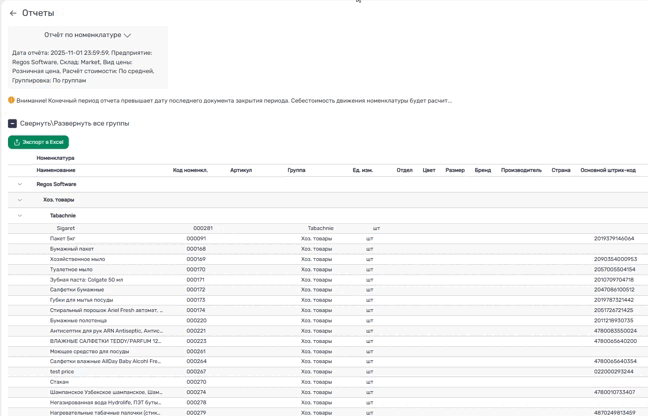 - Группу номенклатуры – включается фильтр по выбранной группе;