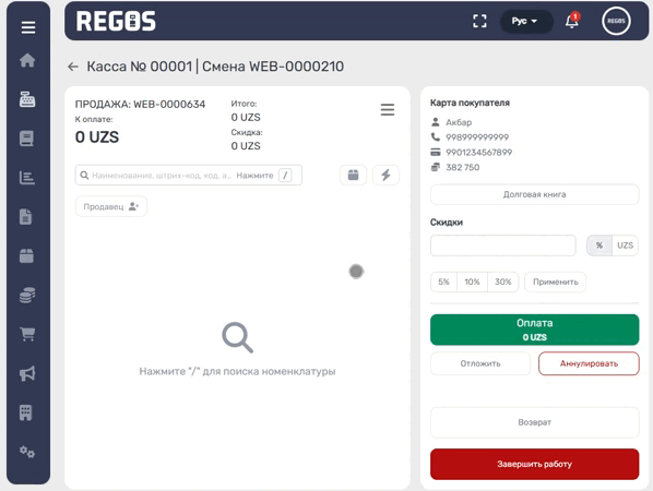 2. Работа с картами покупателей вынесена на основной экран кассира.