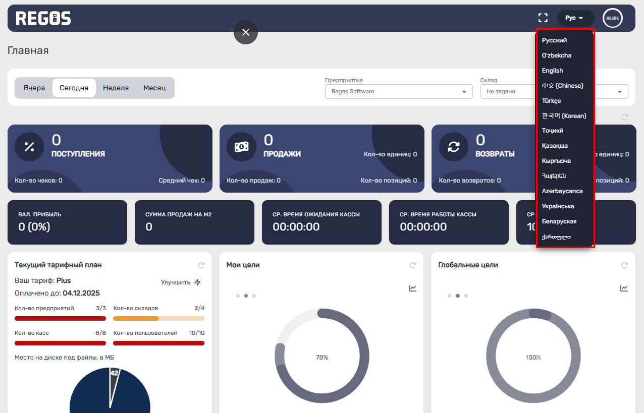 1. Добавлена поддержка 14 языков, что позволяет работать в REGOS:Online пользователям из разных регионов.