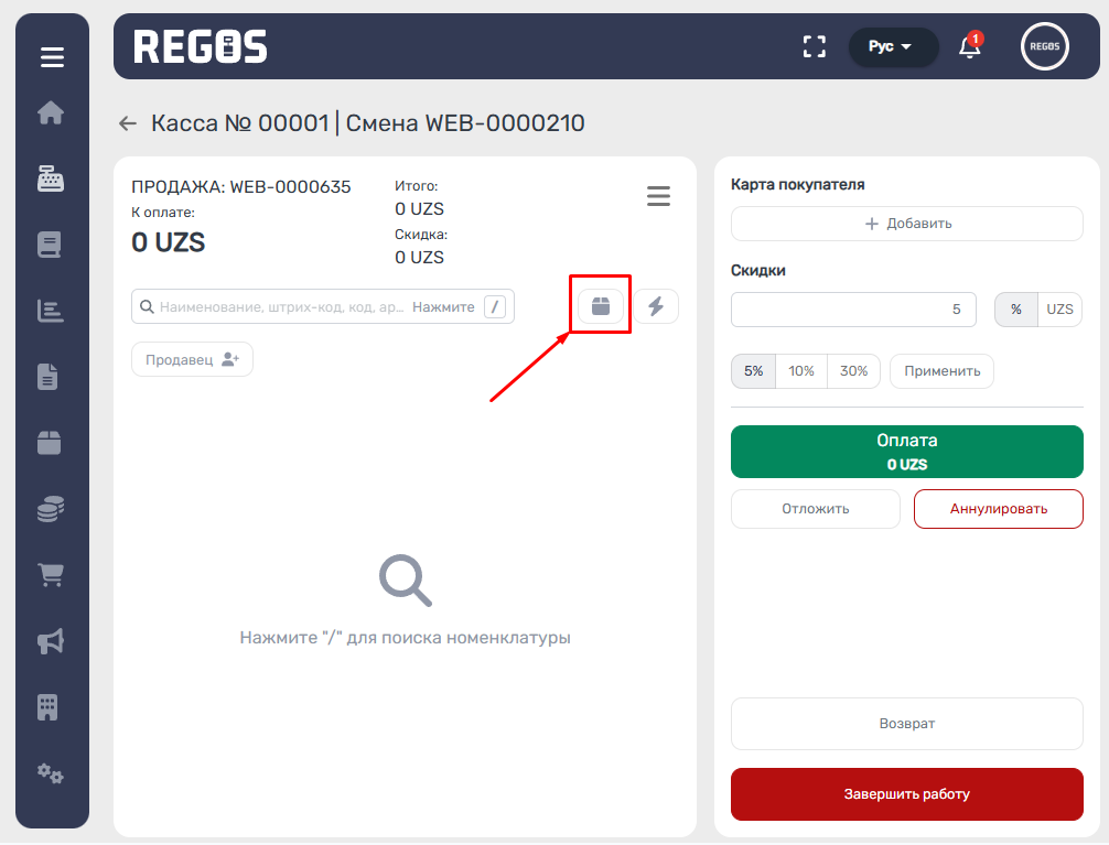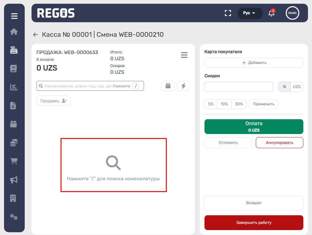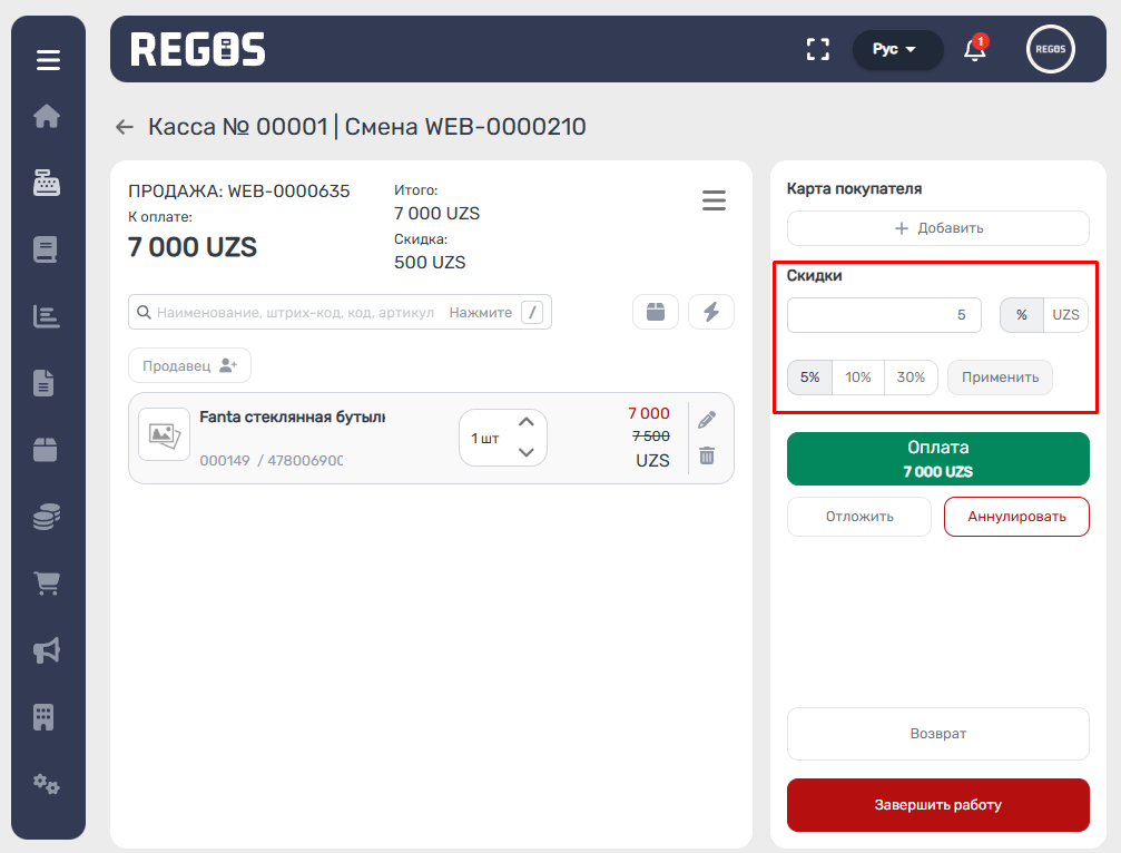 6. Работа со скидками была вынесена на рабочий экран кассира.