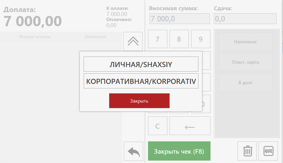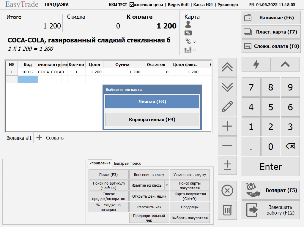 Важно: данный функционал активируется только в том случае, если в настройках программы задействована виртуальная касса.