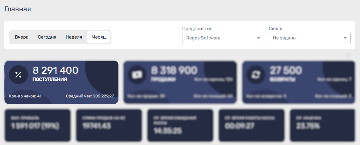 Все ключевые данные – сразу на главной странице. Не нужно открывать отчёты, фильтровать таблицы или ждать загрузки.