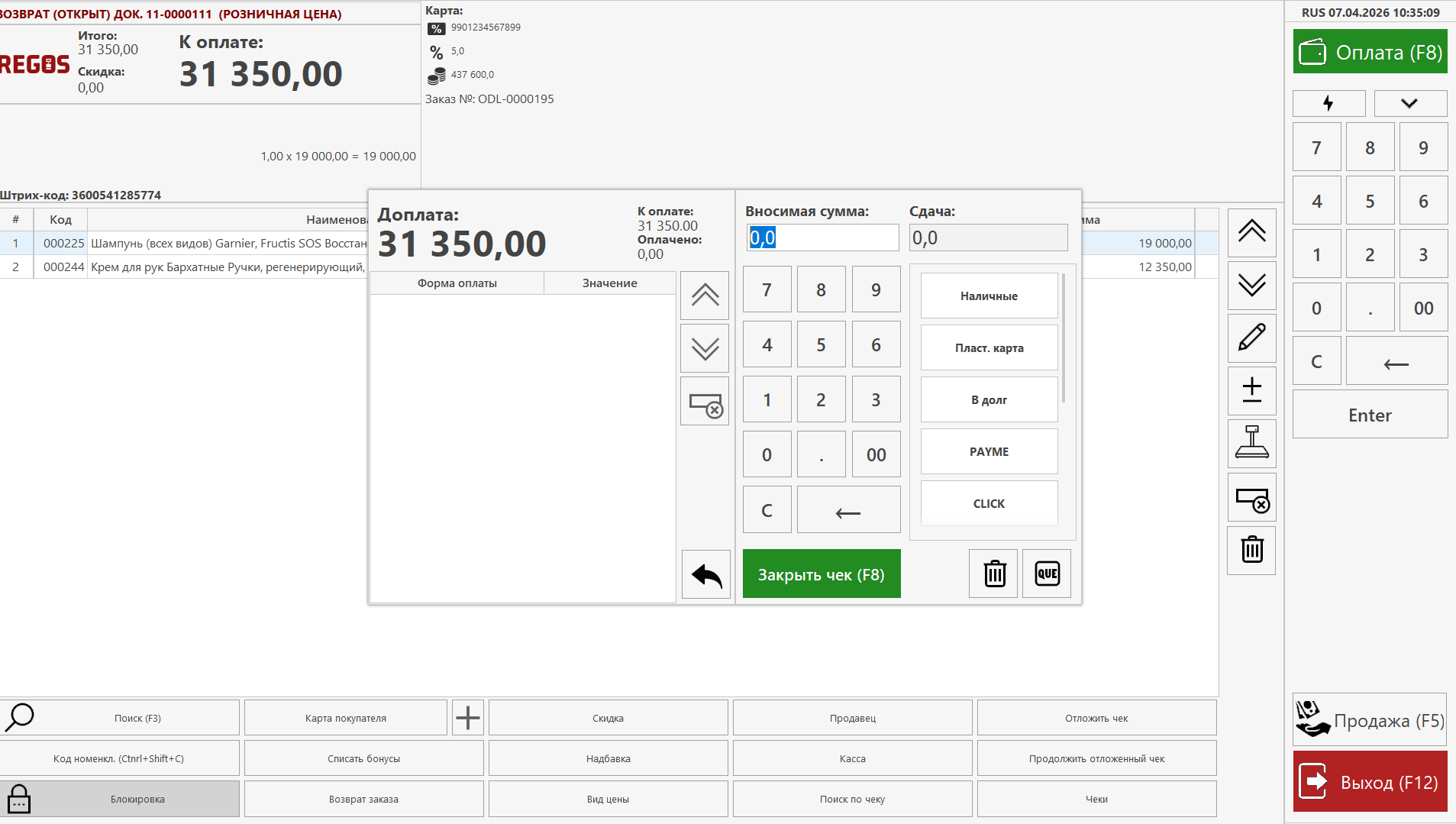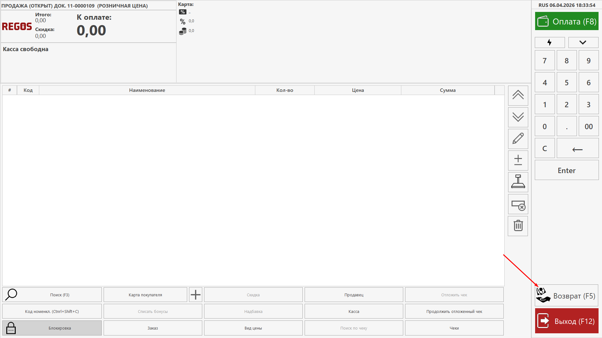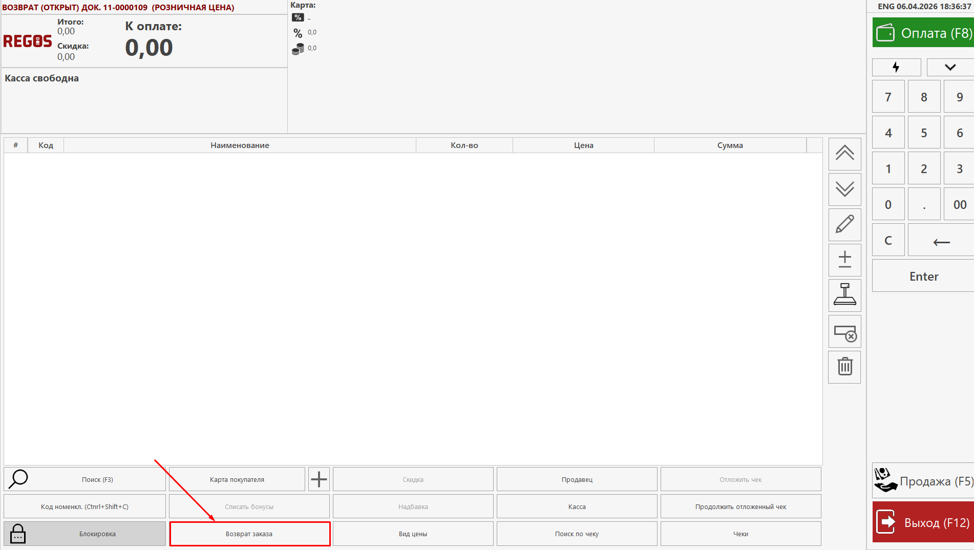 1. Переведите кассу в режим возврата