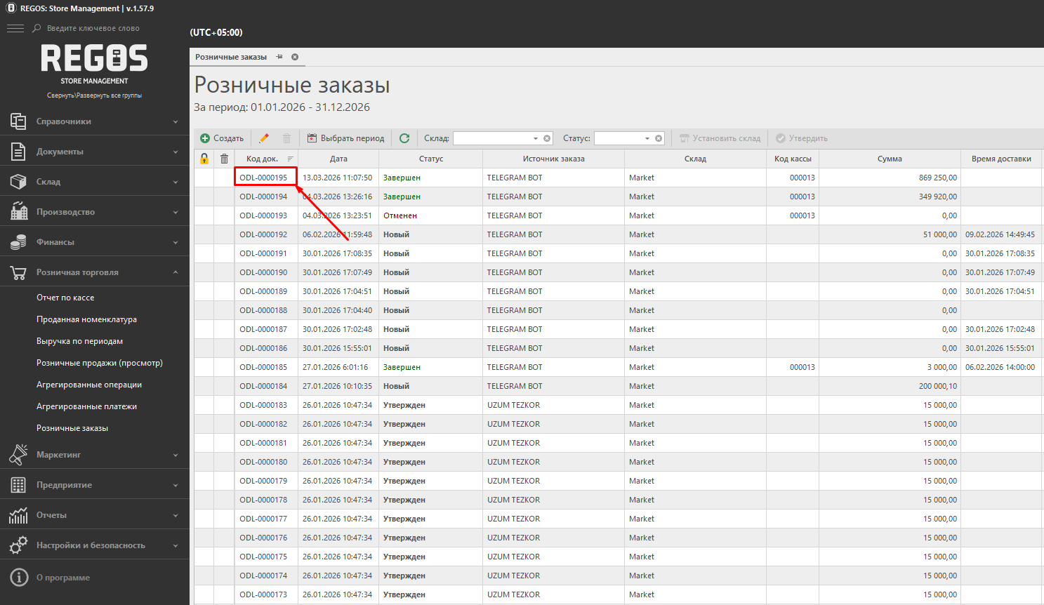 Розничная торговля → Розничные заказы