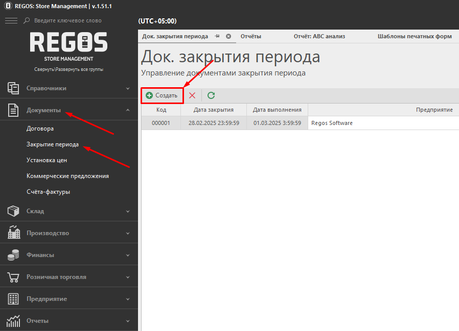 Для создания документа закрытия периода в Сервисе REGOS необходимо выполнить несколько шагов: