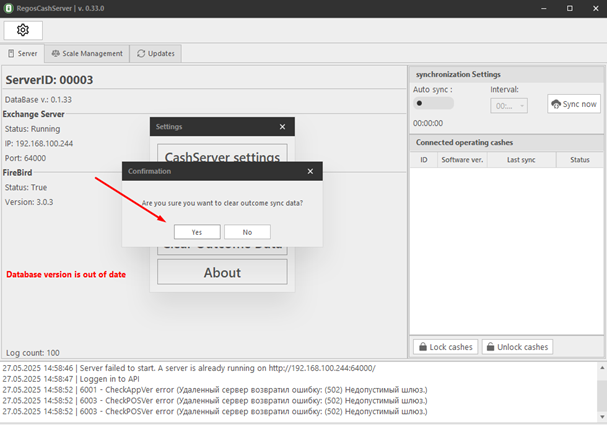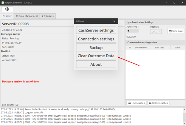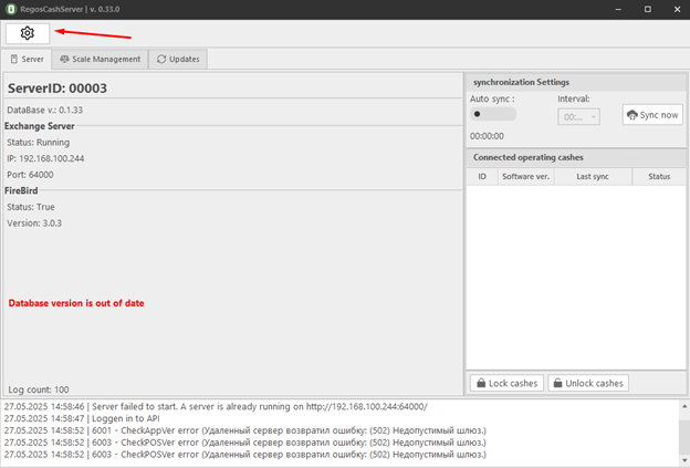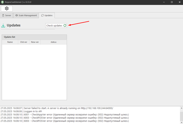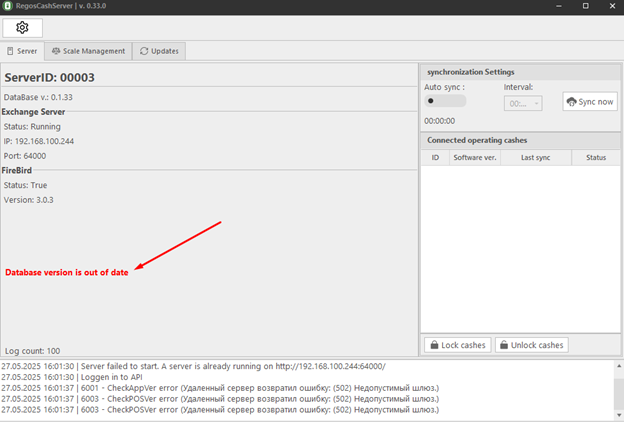 В связи с выходом масштабного обновления, необходимо вручную обновить REGOS: Cash Server.