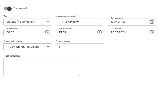 “Navro‘z va Hayit uchun 2+1 shirinliklar” aksiyasi o‘rtacha chekni oshirish, bayram xaridlarini rag‘batlantirish va yangi mijozlarni jalb qilish uchun ajoyib vositadir.