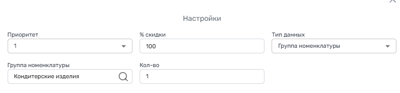 - “Qandolat mahsulotlari” guruhidagi bitta mahsulotga 100% chegirma qo‘ying.