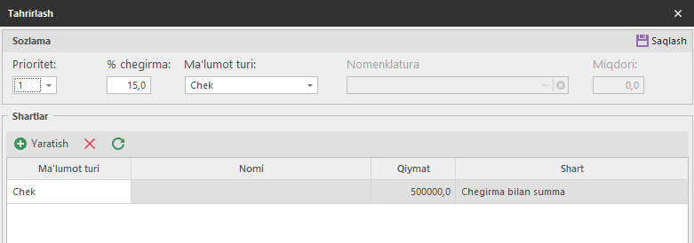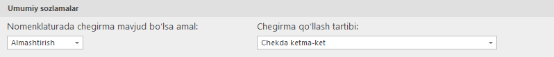 (Qo‘shish / Almashtirish / Qo‘llamaslik) - «Chegirmani qo‘llash tartibi» maydonini to‘ldirish shart emas