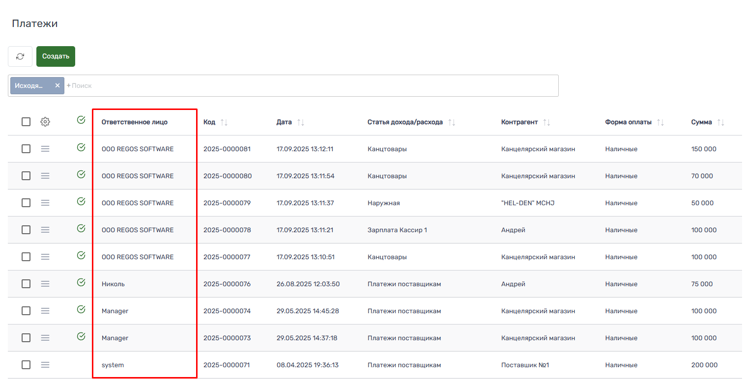«Mas’ul shaxs» ustunida to‘lovni kim yaratganini tekshiring.