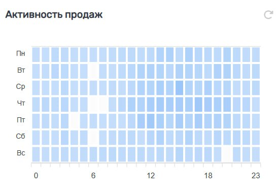 U haftaning kunlari va soatlar bo‘yicha faol xarid davrlarini ko‘rsatadi.