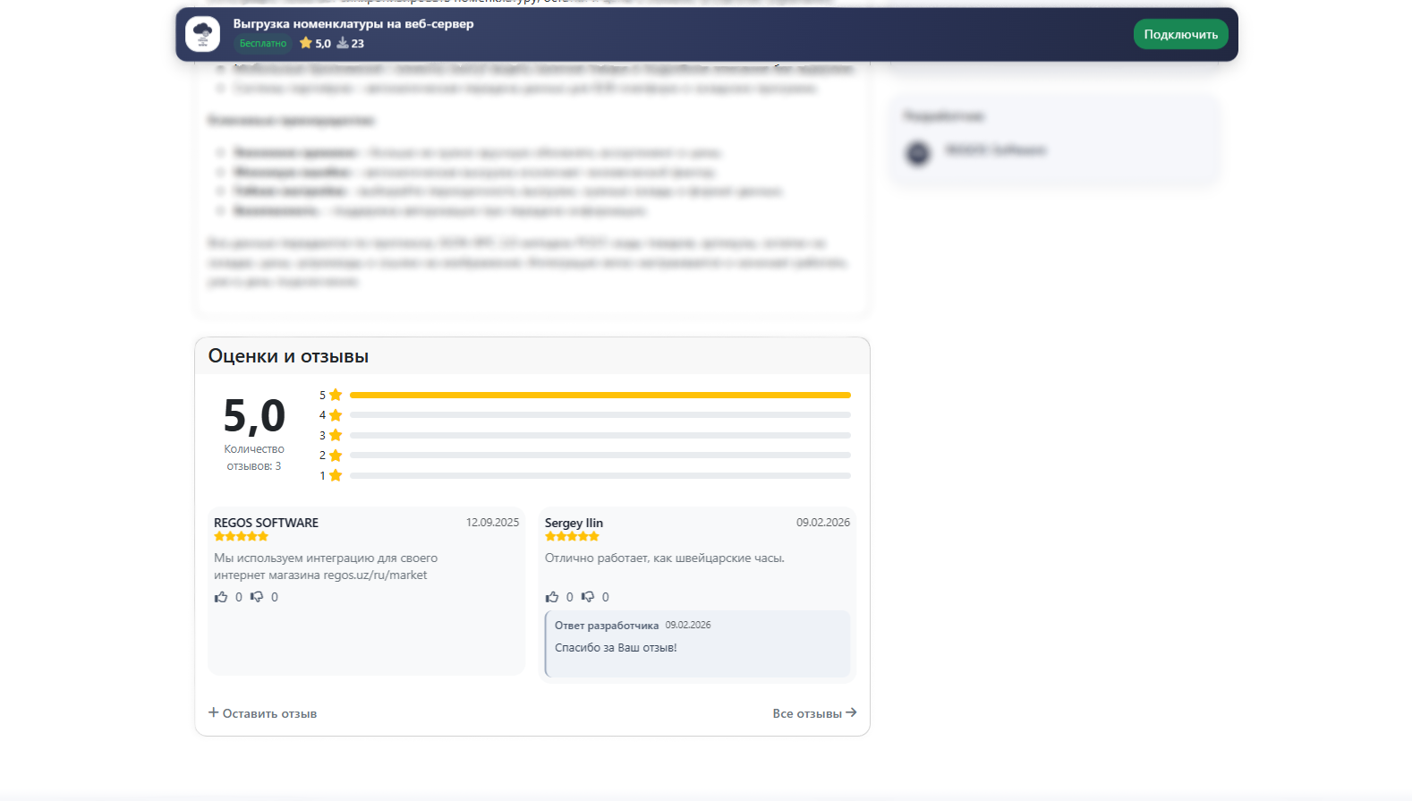 Integratsiya kartochkasida ishlab chiquvchi uchun alohida blok paydo bo‘ldi. Unga o‘tilganda filtr avtomatik tarzda qo‘llaniladi va foydalanuvchi katalogning bosh sahifasiga yo‘naltirilib, ushbu ishlab chiquvchiga tegishli barcha integratsiyalar ko‘rsatiladi. Bu bir muallifning boshqa yechimlarini tezroq topish imkonini beradi.