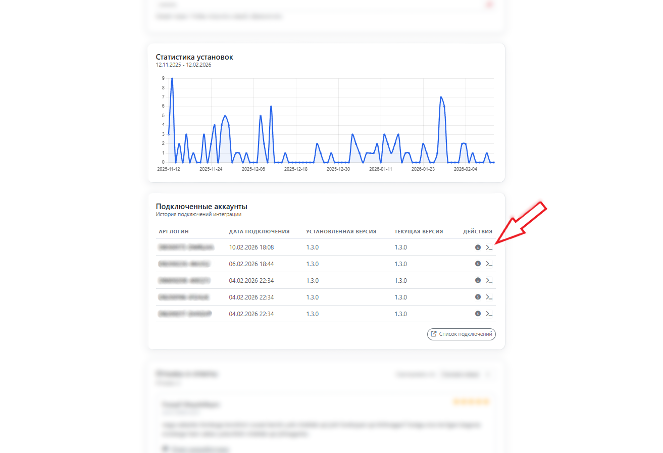 Shuningdek o‘rnatishlar statistikasi va ulangan akkauntlar mavjud.