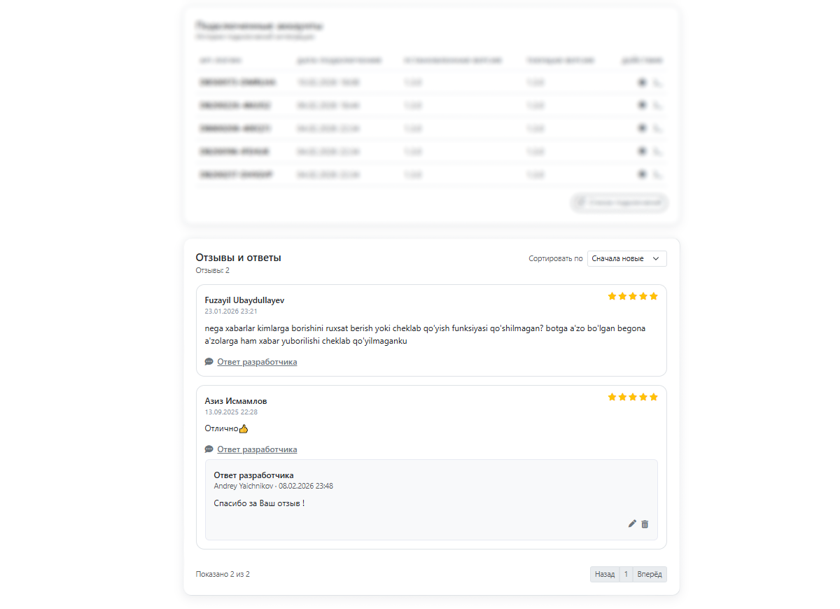 Integratsiya kartochkasida ishlab chiquvchi fikr-mulohazalarni o‘qishi va ularga javob berishi mumkin
