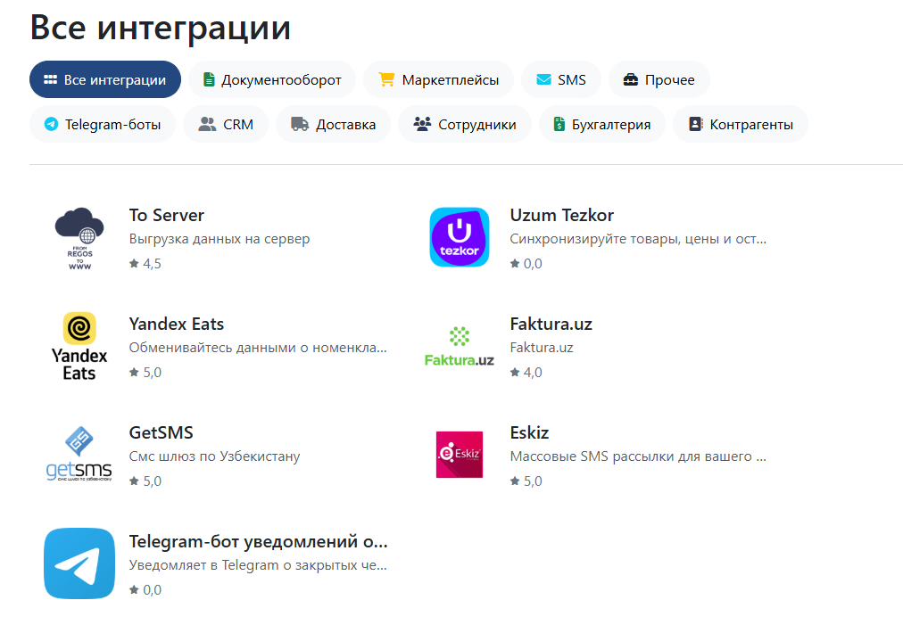 - Integratsiyalar katalogi alohida resursga chiqarildi – apps.regos.uz.