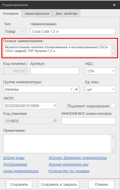 Chek shabloniga nomenklaturaning to‘liq nomini chiqarish imkoniyati qo‘shildi.