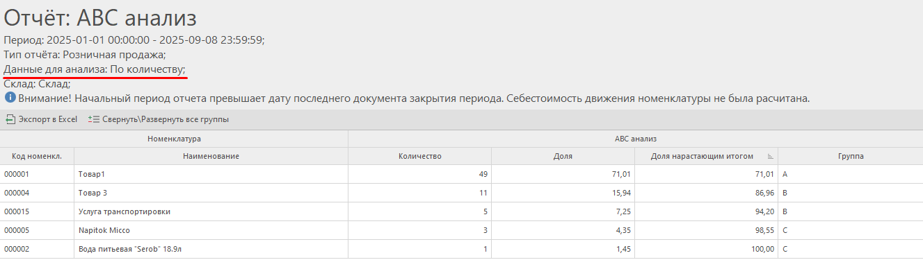 Tahlil uchun ma’lumotlar tanlanganda ABC-tahlil ma’lumotlarini ko‘rsatish xatosi tuzatildi.