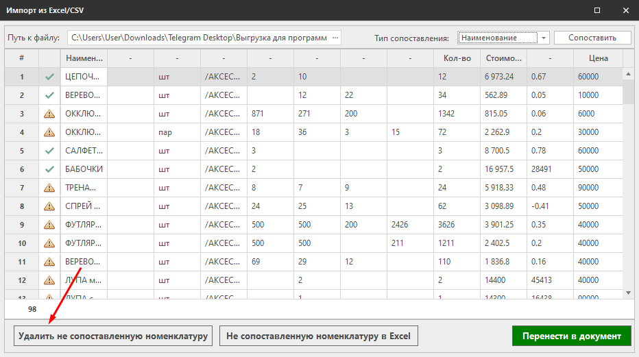 Kontragentdan tushum hujjatiga import qilganda, mos kelmagan pozitsiyalarni bir tugmani bosib o‘chirish imkoniyati qo‘shildi.