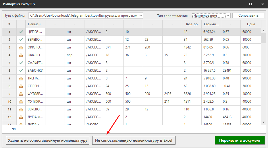 Import oynasidan mos kelmagan nomenklaturani Excelga eksport qilish imkoniyati qo‘shildi.