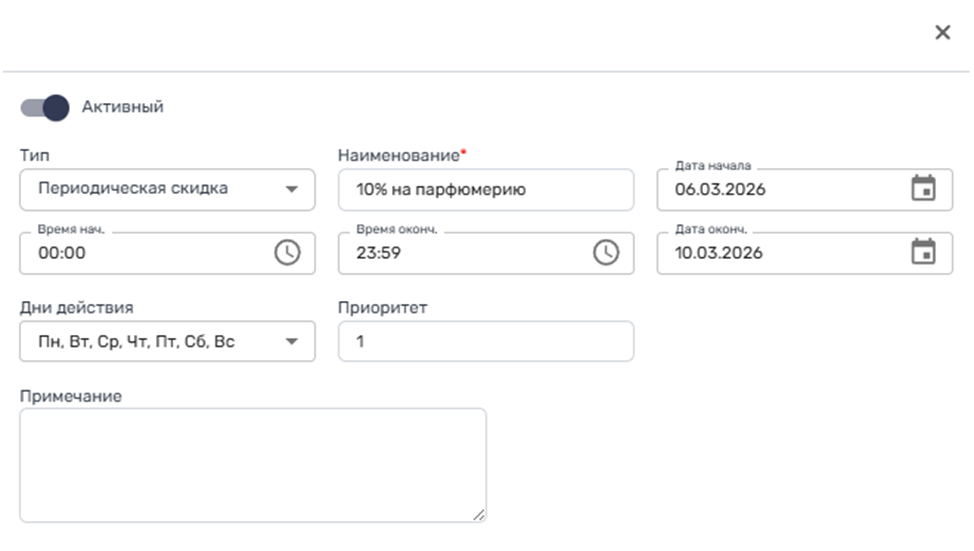 O'rnatish tugagach, tizim atir sotishda avtomatik chegirma qo'llaydi.