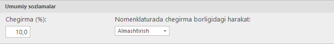 Chegirma barcha tovarlarga amal qilgani uchun tovar guruhi tanlash shart emas – tizim avtomatik ravishda barcha tovarlarga qo‘llaydi.