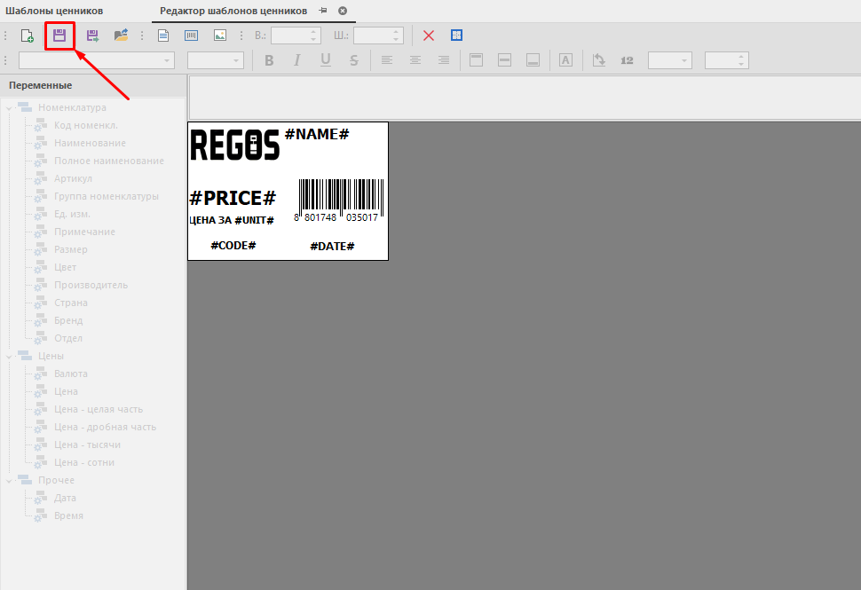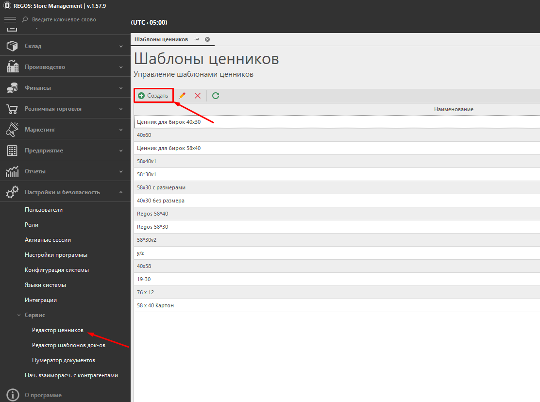 2. “Yaratish” tugmasini bosing – narx yorlig‘i shablonlari muharriri ochiladi.