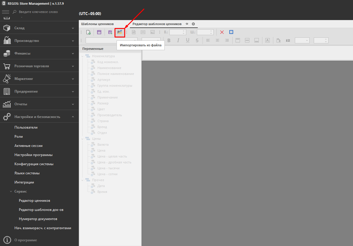 1. “Sozlamalar va xavfsizlik” → “Servis” → “Narx yorliqlari muharriri” bo‘limiga o‘ting.