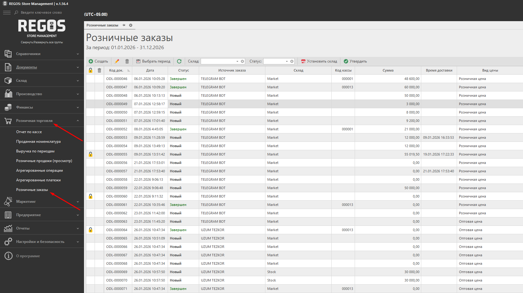 Chakana savdo → Chakana buyurtmalar